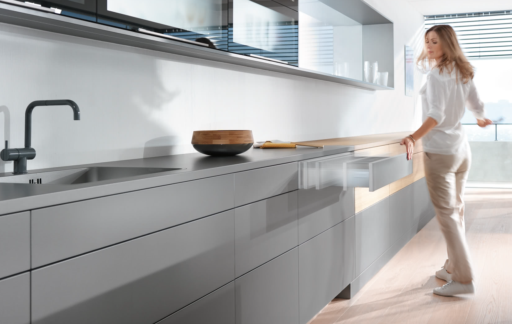 Los accesorios de CREO Kitchens consiguen la apertura y el cierre sea cómoda y confortable. Los accesorios Blum convencen por el funcionamiento impecable, el diseño apreciado y la larga duración. Mecanismos para puertas abatibles con apertura facilitada, movimiento suave para cajones y cestos y muchas otras soluciones.