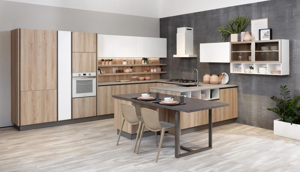 Se trata de una cocina versátil, hecha a medida. Su diseño es joven y acogedor sin renunciar a los altos estándares tecnológicos y un diseño atractivo y funcional. La colección Wood combina la cocina y la sala de estar, respondiendo a las necesidades de toda la familia como, por ejemplo, la necesidad de un espacio para smart funcionando, que se integra perfectamente con el entorno. Las cocinas Tablet Wood ofrecen la garantía de una excelente relación calidad-precio.